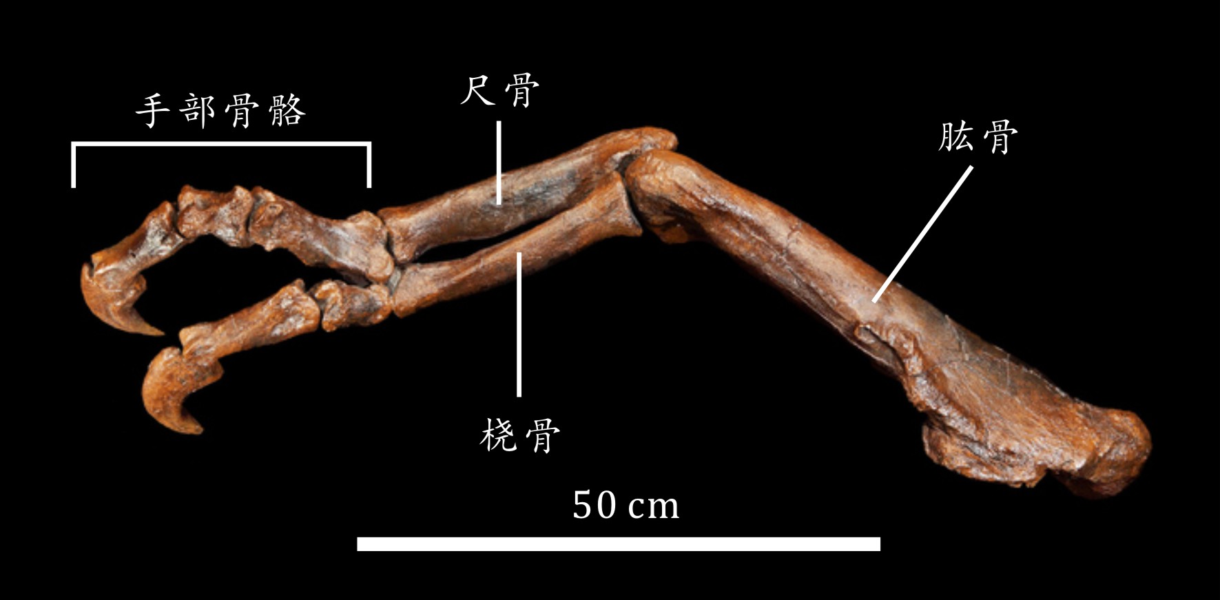 此外,霸王龙迷你前肢的手部骨骼也十分有趣,其形态特征同我们熟知的大多数肉食性恐龙不同。目前已知的大多数坚尾龙类恐龙都具有三个完整的手指,即第二、第三和第四指(基于框架转移假说);少数类群还保留有第一手指。相比之下,霸王龙和其近亲只保留了“两个半的手指”,即完整的第二和第三指以及残留的第四掌骨。这一现象表明第二和第三手指在霸王龙的生命历程中发挥了十分重要的作用,显著地加强了手部的撕扯力度和抓握能力,有利于指尖的集中用力;而第四指则高度退化,仅保留了一个近侧掌骨。十分有趣地是,霸王龙的第四掌骨没有同临近的第三掌骨高度愈合。相比之下,亲缘关系较近的艾尔伯塔龙和特暴龙却具有高度愈合的第三和第四掌骨;“第三掌骨”显得更加粗壮。因此,科学家认为霸王龙的前肢力量要略逊于其近亲,但这一缺陷可以被强大的颌骨撕咬能力有效地弥补。